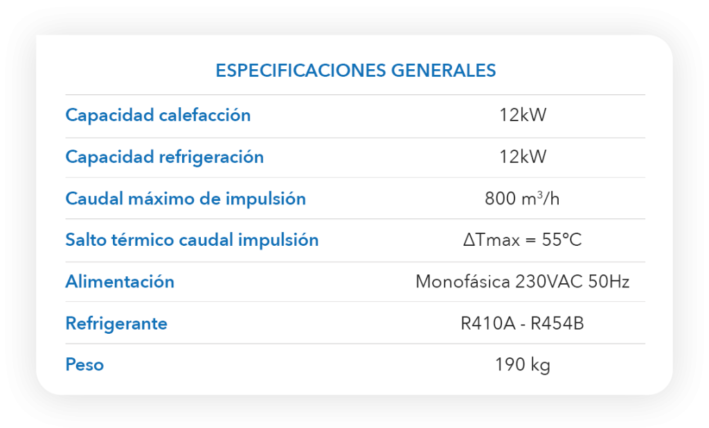 • Funcionamiento 100% aire exterior para una renovación completa del aire en la sala
